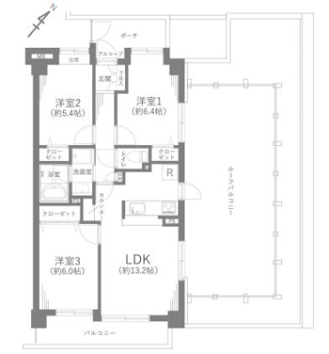 ルーフバルコニー(35.20u)使用料:1410円/月/6階建 |