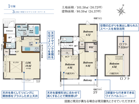 土地面積 101.58m² (30.72坪) 建物面積 80.59u