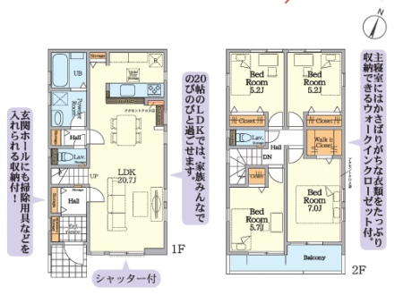 | 築年月 | 2026年6月築 | 間取り | 4LDK (LDK20.7/洋室5.2/洋室5.2/洋室5.7/洋室7) | ||